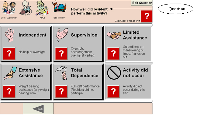 ADL Style: ADL Style question types will be pre-filled. The question type allows for one question and only 6 choices. The ADL question type is unique because each choice has a picture associated with the choice as shown below.