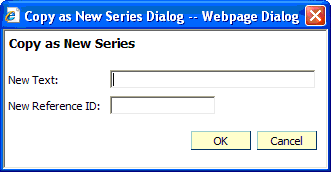 Copy as New Series – To copy the entire series, questions, choice, and all follow-up series attached to the series, use the copy as new series button. Enter the new series name and the series reference id. Question and choice reference id’s will be created using the new reference id as a template.