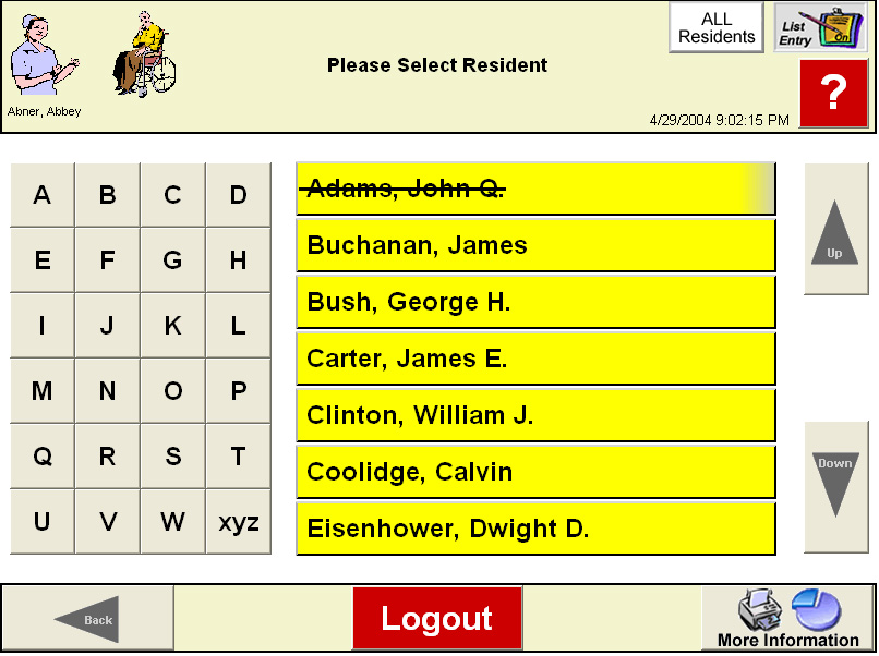 screen, before selecting a resident, click the List Entry button on the
